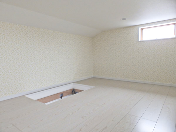 更に勾配天井上部の窓から光が差し込み、より一層明るく暖かい空間に。