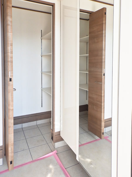 玄関には従来のシューズボックスに加えシューズインクロークを設置し、ゆとりのある空間に。