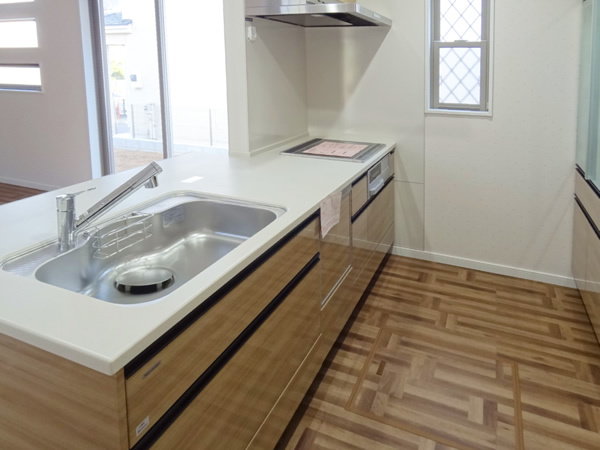 こだわりのオープンキッチンは家族との会話を楽しみながらの調理を可能に。