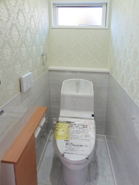 柄の強いクロスはトイレに使用し、注文住宅ならではの一味違ったおしゃれな空間に。