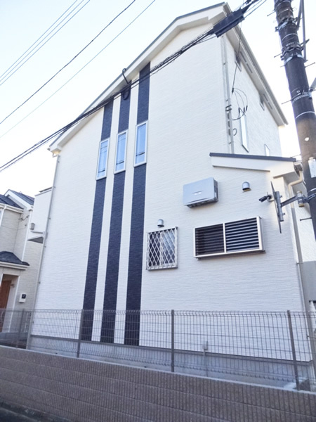外壁サイディングは白でまとめられ一見シンプルに見えますが、サイドに縦のラインをいれより一層バランスの取れたデザインに仕上がりました。