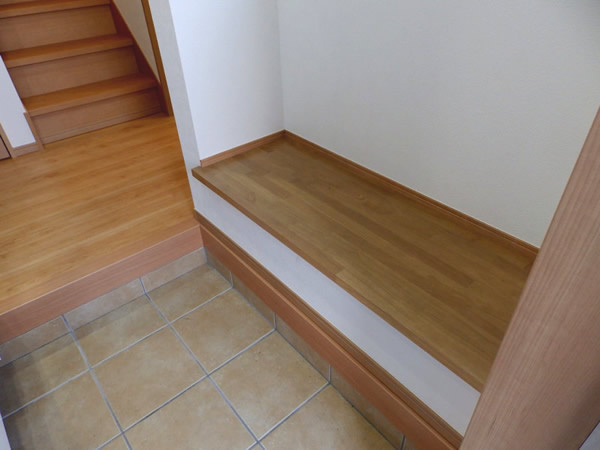 玄関にはこだわりの出窓ベンチを設置致しました