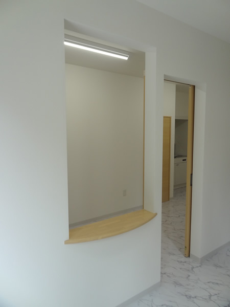 カウンターの高さなど何度も打ち合わせをし、車いすの患者様でも利用できるよう施工いたしました。