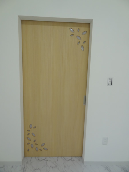 タイルに、暖色のナチュラル色の建具でまとめました。