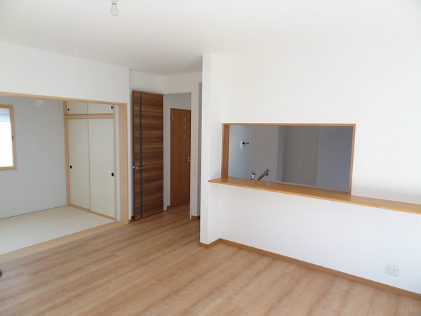 一間半のワイドな窓が広がる明るいLDKと、装飾窓がアクセントの和室は続き間として利用出来、広さは約20帖。
