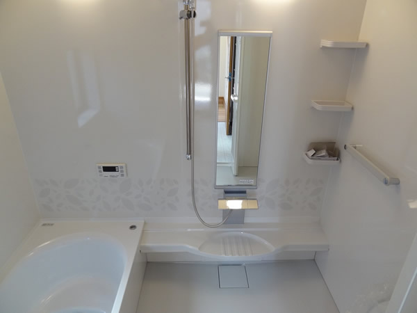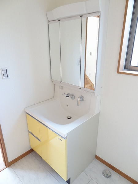 洗面室には便利な可動棚付き。